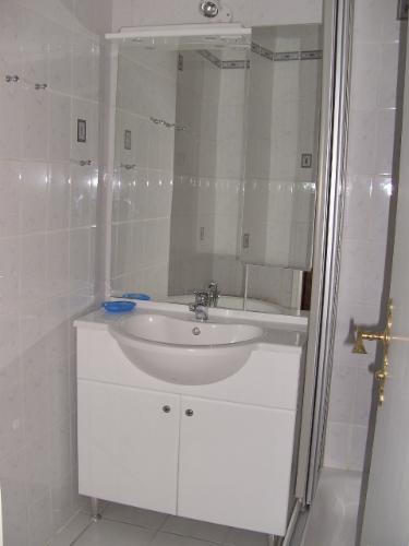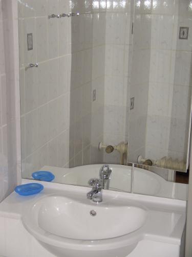 Bad (Boden und Wände bis zur Decke gefliest) mit Handtüchern