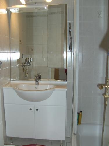 • Bad (Boden und Wände bis zur Decke gefliest) mit Handtüchern