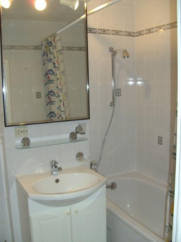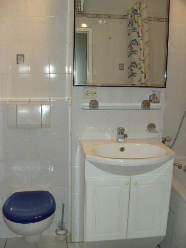 • Bad (Boden und Wände bis zur Decke gefliest), Badewanne, Föhn, Handtücher